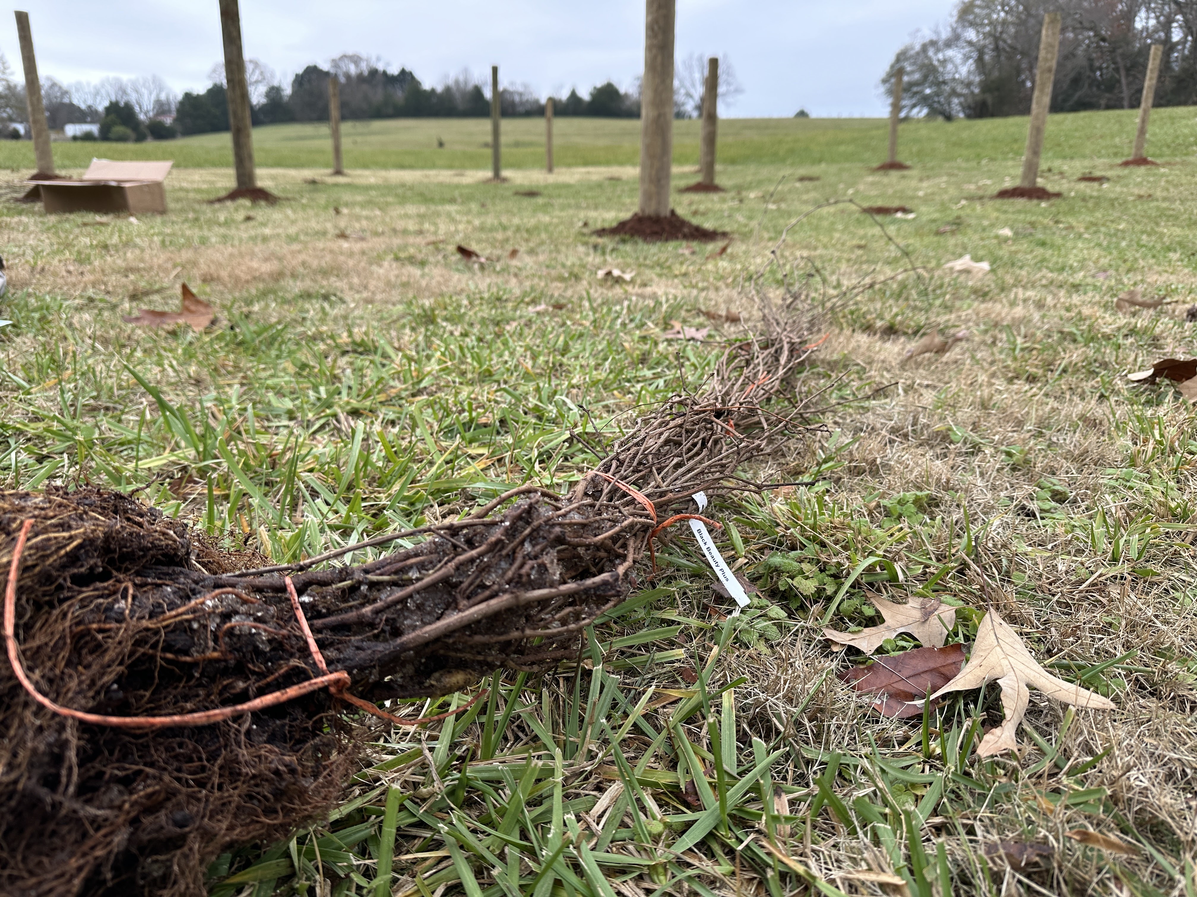 Glad the rain held off today so we could put some work in on the vineyard! We planted 40 new muscadine vines, bringing our total to 70. Plans to install additional posts and plant more vines are in the works. Stay tuned!