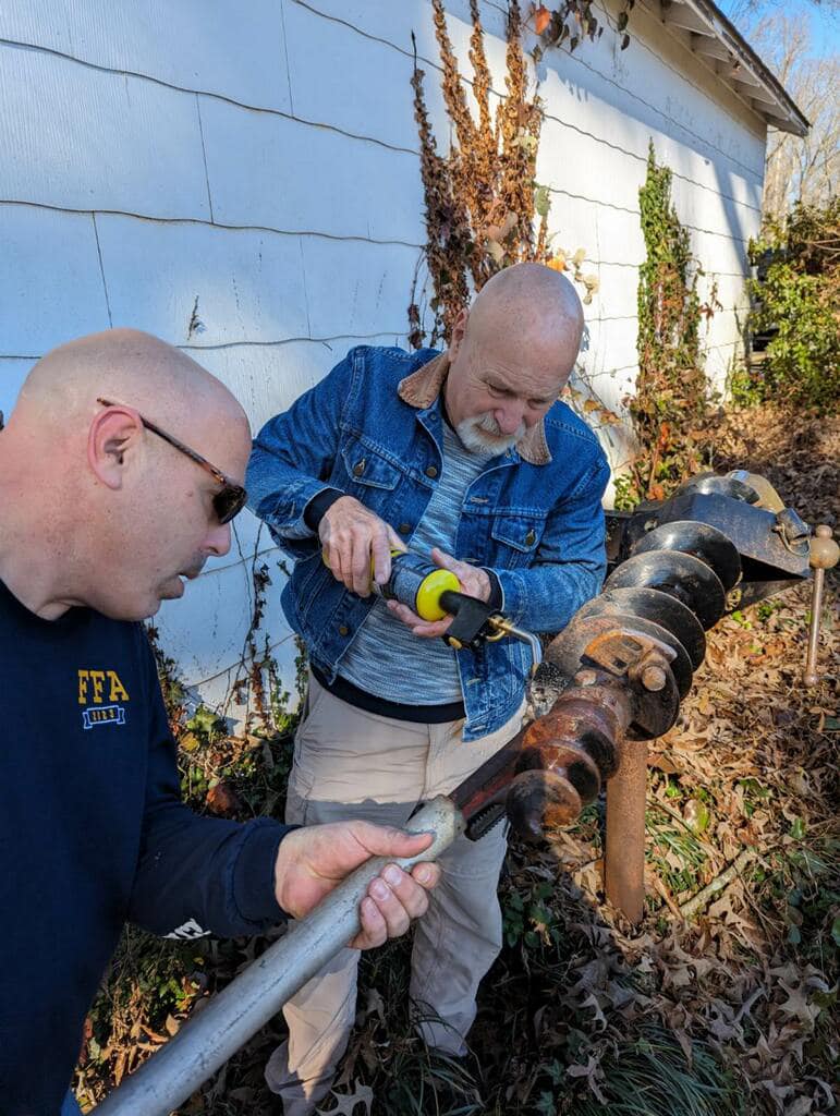 Fun Fact: The yellow bottle in the third picture produces a flame that is 3,670°F, which allows us to bend a piece of metal back into position; it was damaged while digging holes for the vineyard trellis posts.